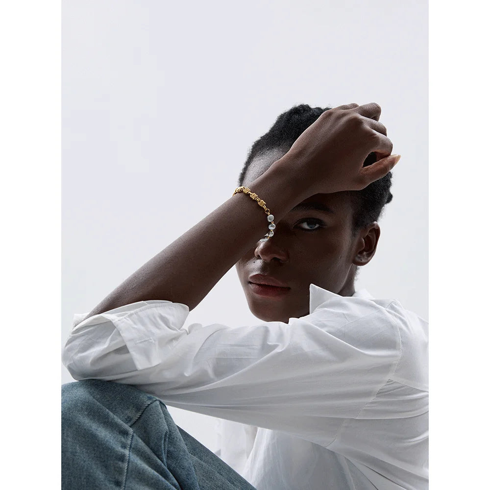 Além disso, celebramos a beleza natural com pérolas de água doce legítimas, escolhidas a dedo para compor seu visual com autenticidade.
