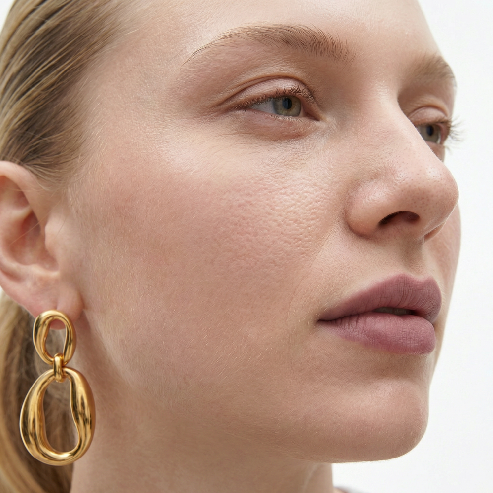 Cada detalhe importa: nossas coleções passam por um rigoroso processo de banho em Ouro 18k de alta micragem, garantindo um brilho inconfundível e durabilidade superior. Além da beleza, priorizamos o seu bem-estar. Todas as nossas peças são desenvolvidas com tecnologia 100% hipoalergênica e livre de níquel, proporcionando conforto absoluto e segurança para o seu dia a dia.